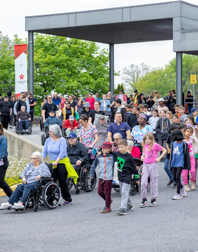 Cet événement rassembleur réunit les résidents du CHSLD, les enfants des écoles et garderies, les familles, les bénévoles et les partenaires communautaires. Il favorise les échanges entre les générations tout en mettant en valeur des valeurs essentielles telles que le respect, l’empathie et la solidarité. Bien plus qu’une simple marche, c’est une expérience humaine et émouvante, avec des parcours adaptés pour que chacun puisse participer, quel que soit son âge ou ses capacités.